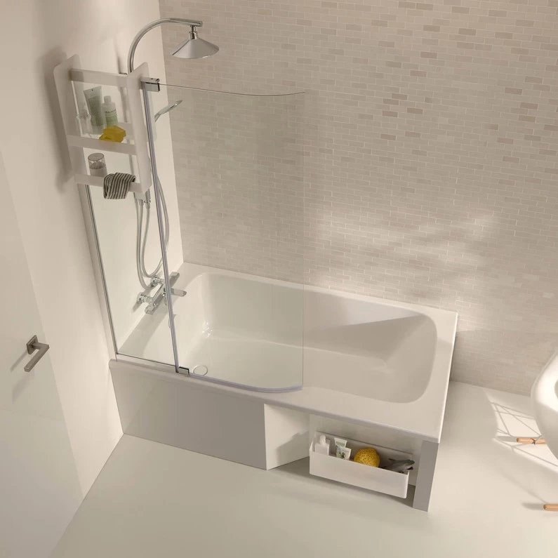 Baignoire douche cm en acryique crée pour que vous n’ayez plus à choisir entre une baignoire et une douche. Cette solution 2 en 1, aussi pratique que confortable, est disponible en version gauche ou droite, en dimensions 170×90 cm et 180×65 cm. Vidage et pieds réglables fournis. Fabriquée en France.