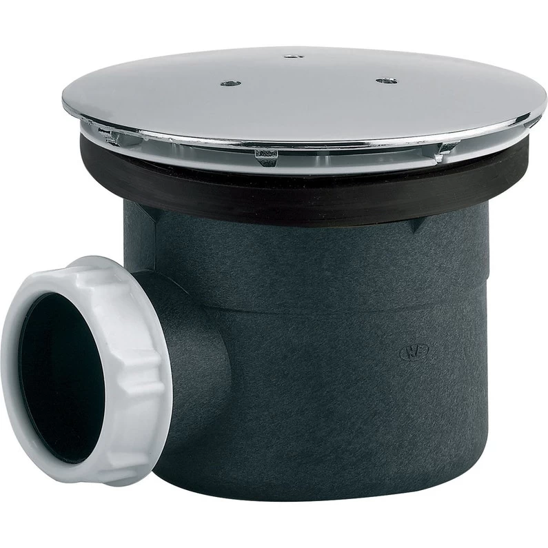 Bonde receveur de douche Ø90 mm, capot métal chromé Ø 120 mm, serrage max.25 mm, corps plastique, sortie horizontale à visser/coller, débit 27 l/mn, Technologie Fit express : joint Autofix, Technologie Cleany Quick : nettoyable sans outils