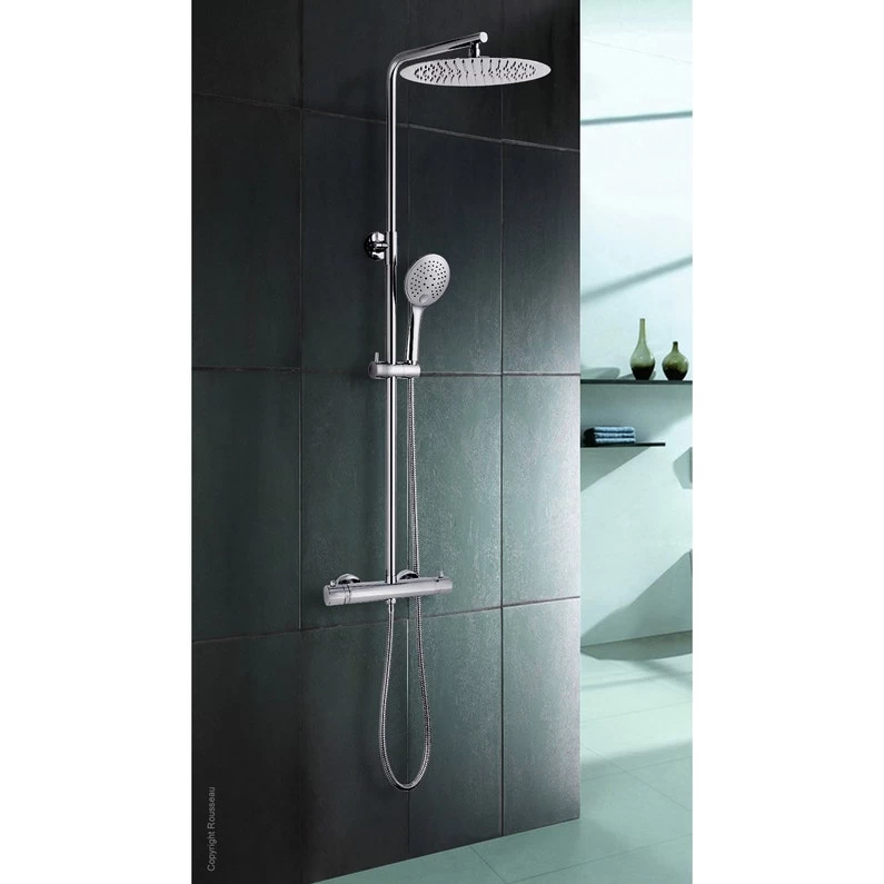 – Douchette 3 jets (pluie, massage, pluie+massage) – Picots souples anticalcaire – Flexible double agrafage pour une solidité renforcée – Bras télescopique et rotatif – Embase réglable en profondeur – Sécurité température à 38° – Douchette: sélecteur de jet par bouton poussoir