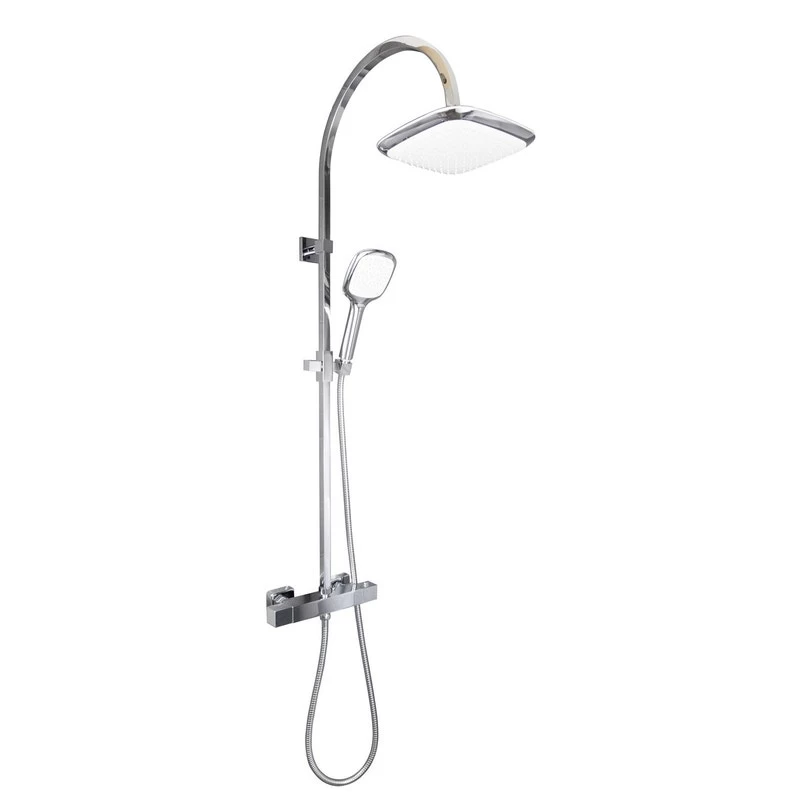 Design non classique car forme 100% carrée, cette colonne de douche bicolore vous permettra d´utiliser les anciens perçages grâce à sa fixation réglable en hauteur. Douche de tête et douchette assorties, laissez-vous charmer. Butée à 38°C, afin de garantir la sécurité des enfants et de tous