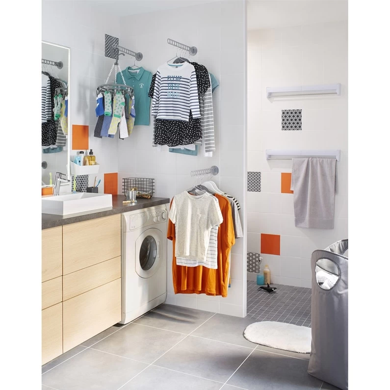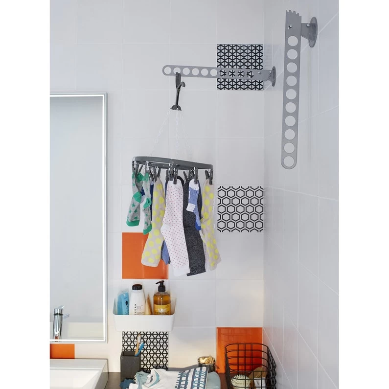 Séchoir compact, pratique, idéal pour le petit linge ou en voyage. Il peut être accroché à d’autres séchoirs.