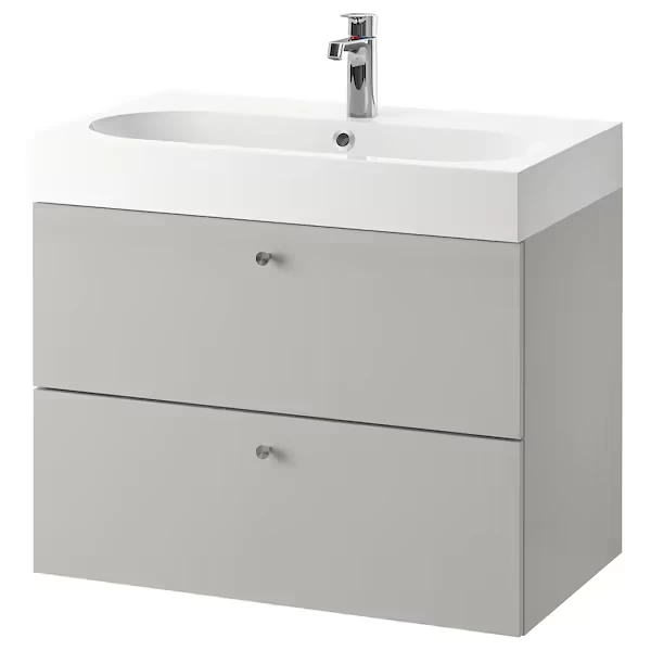 2 vasques, 2 robinets et 4 grands tiroirs. Idéal quand il faut partager la salle de bain.
