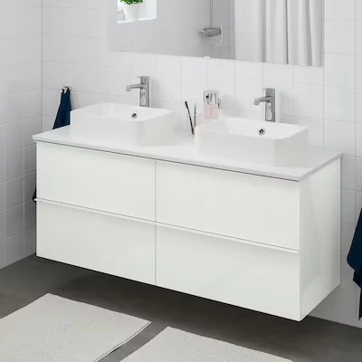 2 vasques, 2 robinets et 4 grands tiroirs. Idéal quand il faut partager la salle de bain.