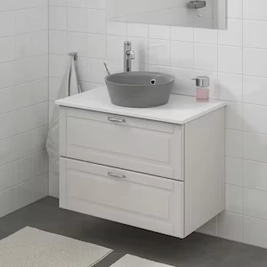 De nombreux rangements et de l’espace sur le plan de travail : une solution idéale pour la salle de bain.