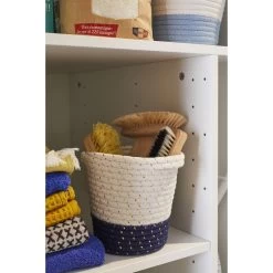 Panier En Polyester Blanc Et Motif Géometrique Bleu, Geometric