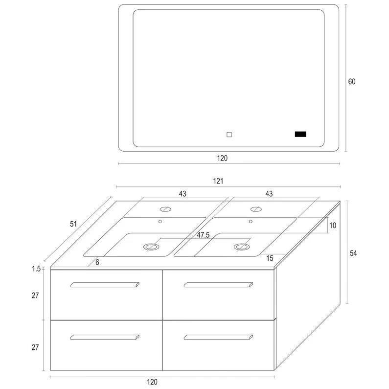 | Dimension du meuble sous-vasque (en cm) | L:120cm, Prof:50cm, H:54cm |