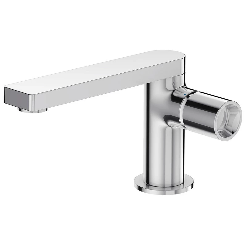 Mitigeur lavabo – levier “Pure”. Avec flexibles d’alimentation. Débit limité à 5 l/mn. Aérateur anti-calcaire. Bonde de vidage métal à clapet couvrant.