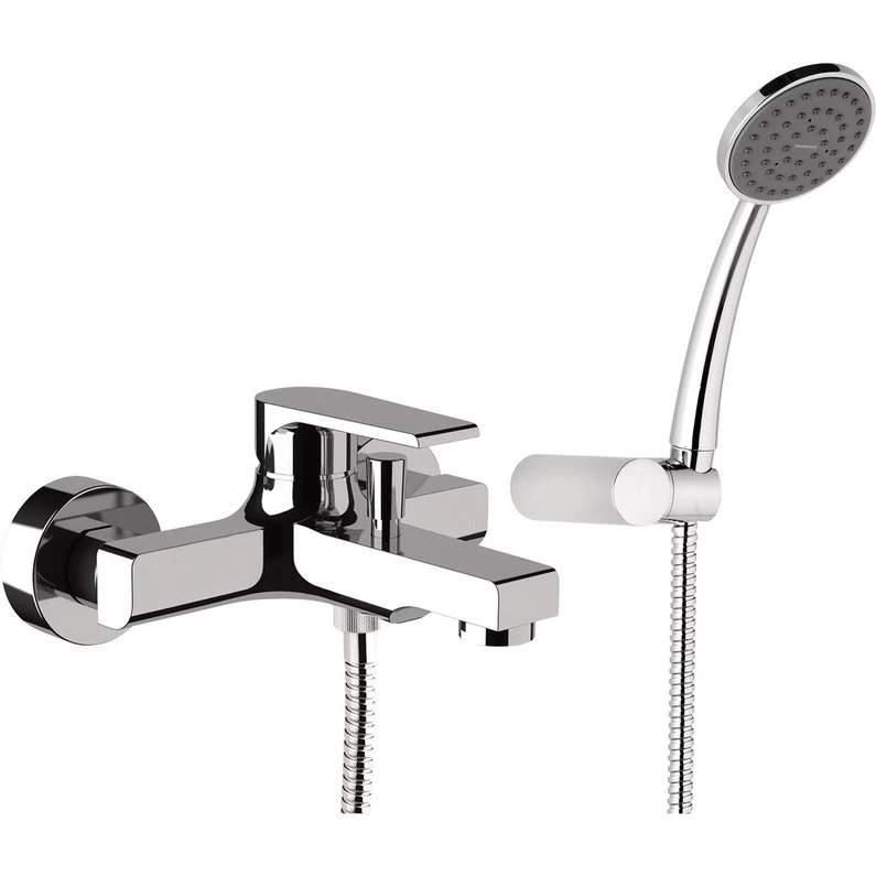 Mitigeur Bain Douche mural avec douchette ABS 1 jet anticalcaire diam 85, flexible laiton double agrafage 150cm, support douchette articulé ABS, entraxe 150mm, équipé d’une cartouche à disques céramiques diam 35, manette métal, sortie douche M15/21, inverseur automatique, entrées d’eau F20/27 à écrous, rosaces laiton rondes, chromé.