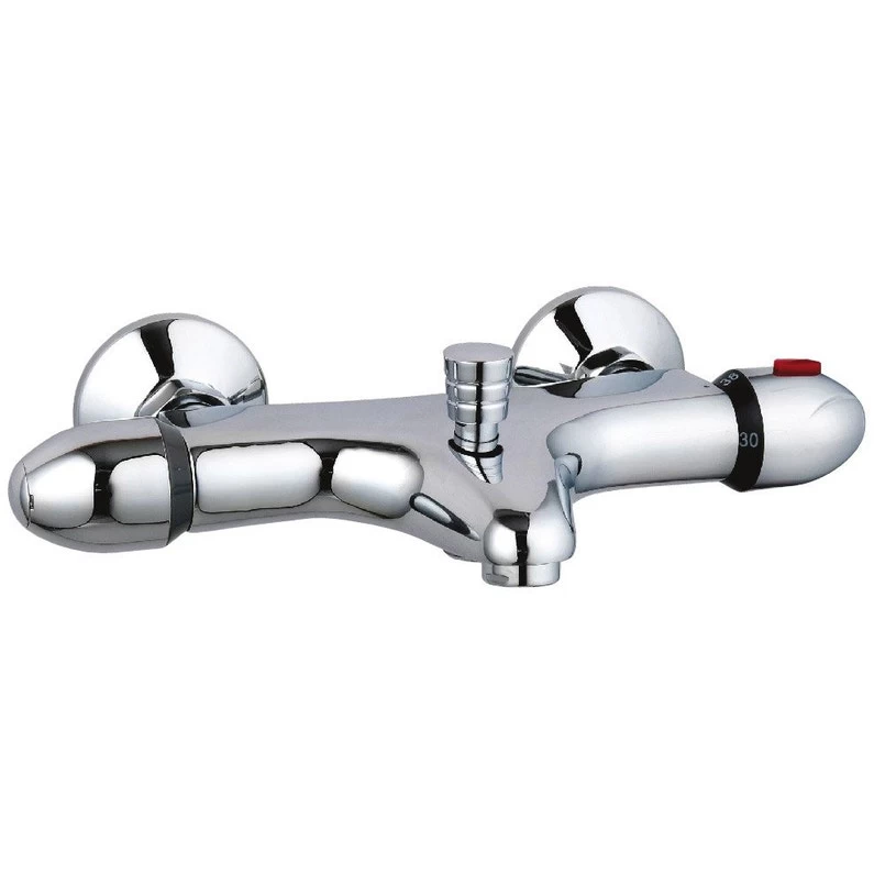 Mitigeur baindouche thermostatique mural chromé Entraxe 150 mm Cartouche de régulation unique Croisillons ABS Inverseur intégré dans la poignée Sécurité anti-brûlure 38° Débit tête 1/2 tour à disque céramique