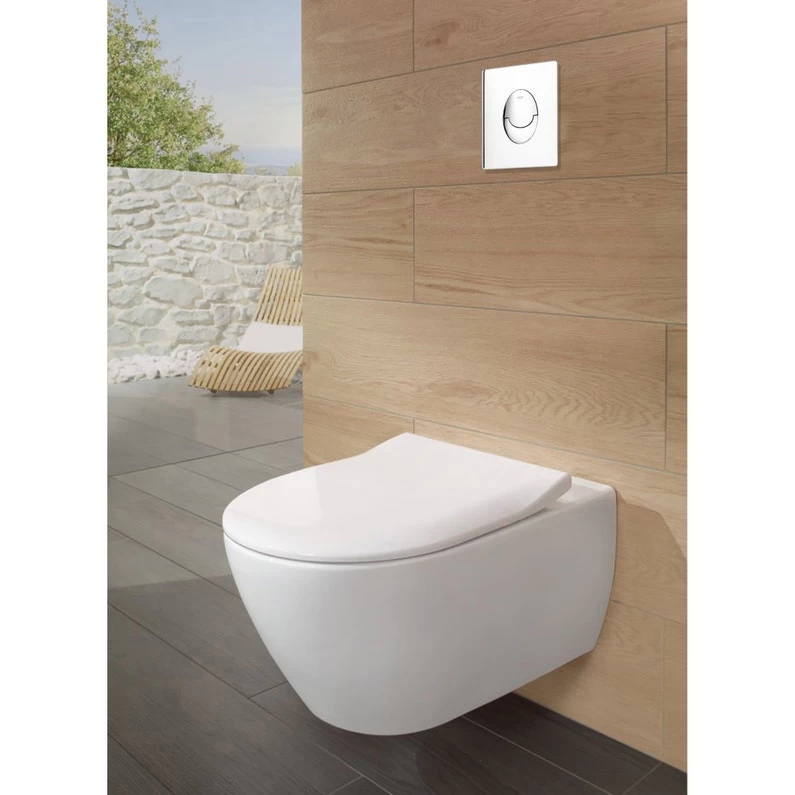 Ensemble Bâti support Grohe Rapid SL Autoportant. Réservoir et mécanisme certifié NF. Réservoir isolé anti-condensation Livré avec plaque de commande double débit (réglage d’usine 3/6L). Chassis en Acier Epoxy. cuvette suspendue Villeroy et Boch Subway sans bride et abattant frein de chute