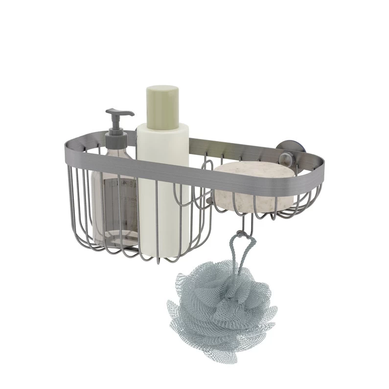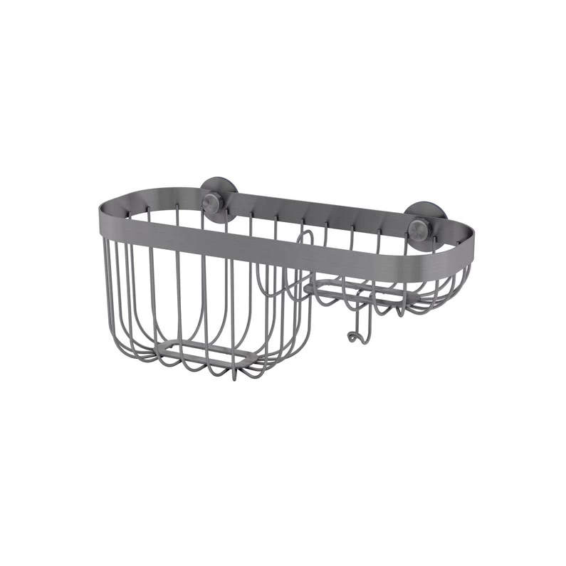 Panier combiné de douche, fixation sans perçage à l’aide d’une ventouse. A l’aide du support pédagogique, je choisis le système de fixation adapté à la surface de ma douche.