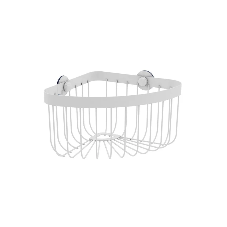 Panier d’angle de douche, fixation avec perçage. A l’aide du support pédagogique, je choisis le système de fixation adapté à la surface de ma douche.