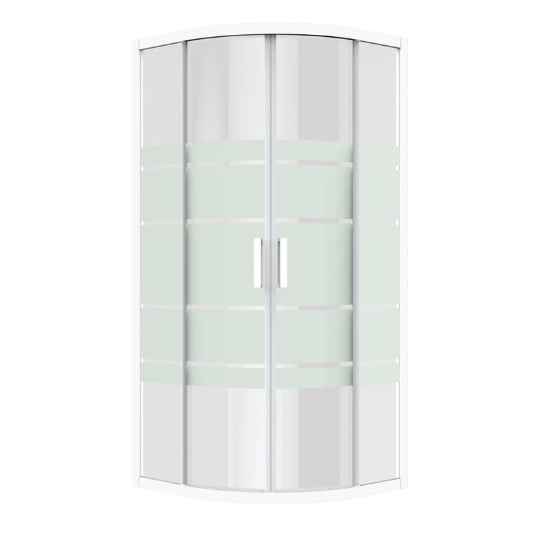 Porte de douche épaisseur 6mm. Limitation des projections d’eau grâce à une hauteur de 2m. Sérigraphie traitée anticalcaire disposée à l’intérieur de la porte.