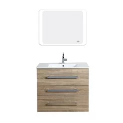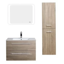 Meuble Salle De Bains 3 Pièces, Senso L.80 X H.68 X P.50 Cm, Bois Clair, Senso