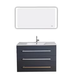 Meuble Salle De Bains 3 Pièces L.100 X H.68 X P.50 Cm, Gris Brillant, Senso