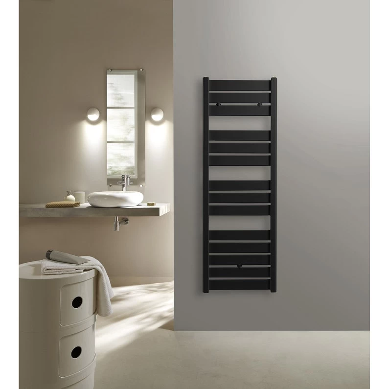 Radiateur sèche-serviettes en acier haute qualité. Double fonction : chauffe la pièce et sèche rapidement les serviettes. Conçu pour vous procurer tout le confort avec une chaleur homogène et enveloppante pour une salle de bain toujours chaude. Design extra plat, grande capacité d’étendage, double revêtement anti-corrosion par 11 bains de traitement. Aspect parfaitement lisse. Excellente durabilité (peinture époxy et finitions homogènes sur toute la surface du radiateur, soudure invisible sans sur- épaisseur). Une finition de haute qualité et une protection anticorrosion haute résistance assurant une longévité incomparable à vos appareils. Le Madras est disponible en blanc et 3 coloris au choix (noir, gris ou marron). Faible épaisseur (9 cm entre le mur et la face avant de l’appareil). Existe aussi en faible largeur (40 cm). Chaque Madras est contrôlé à 14 étapes de construction.